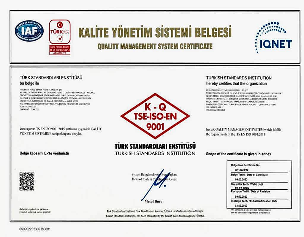 - ISO 9001 Kalite Yönetim Sistemi,